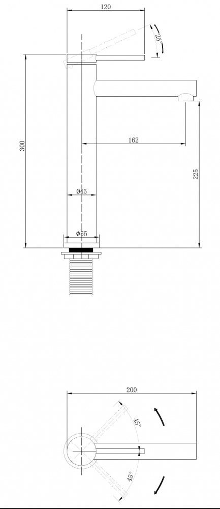 • Высота смесителя: