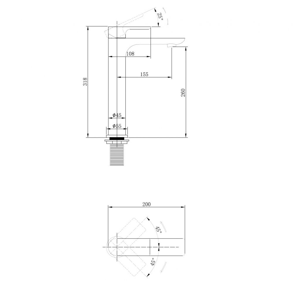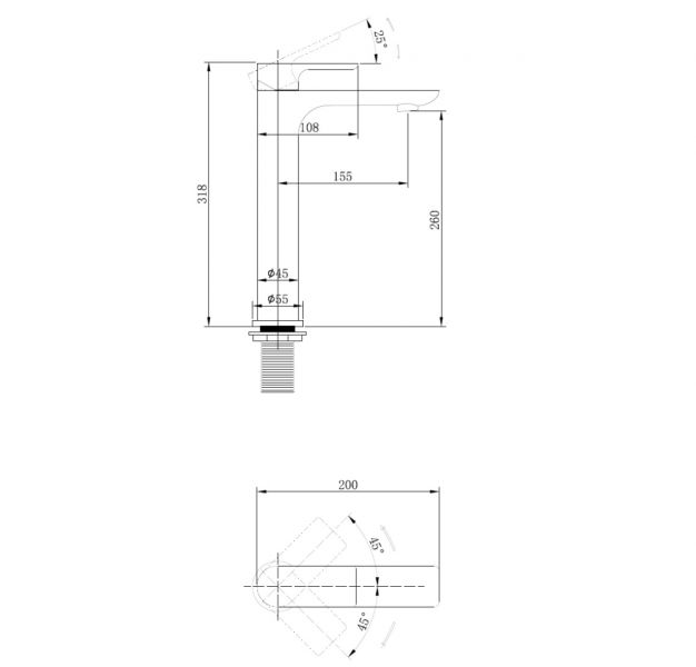 • Высота смесителя: