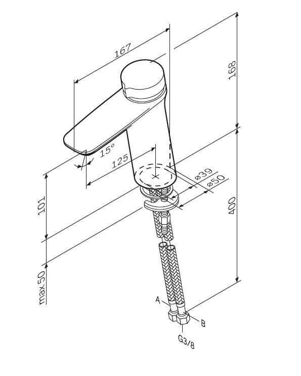 • Высота смесителя: