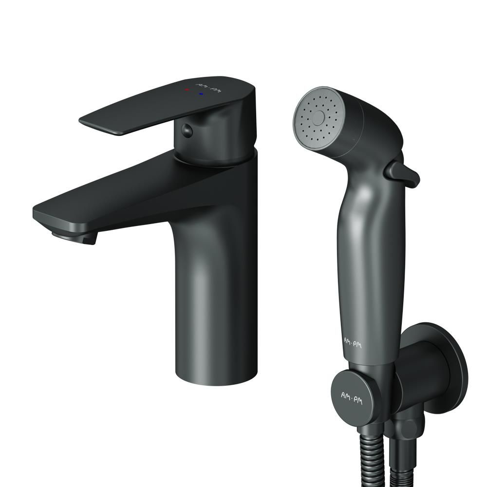 Смеситель для раковины Am.Pm Gem F90A03022 c гигиеническим душем черный Подробнее