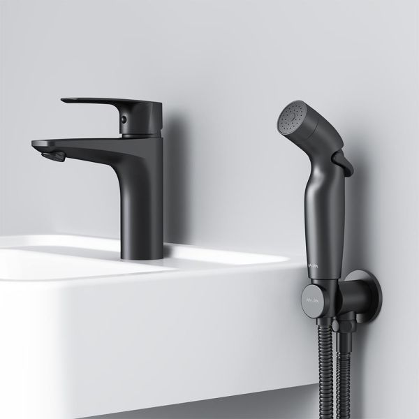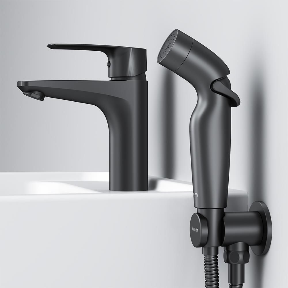 Смеситель для раковины Am.Pm Gem F90A03022 c гигиеническим душем черный