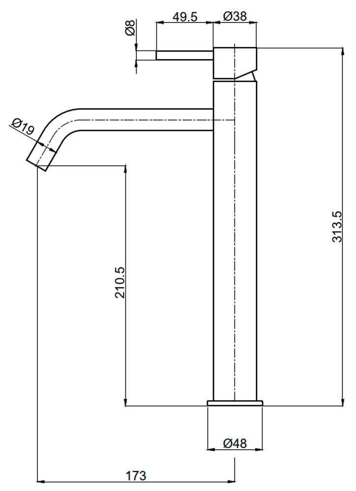 • Высота смесителя: