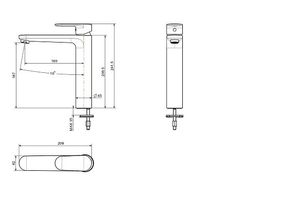 • Высота смесителя: