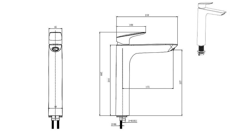 • Высота смесителя: