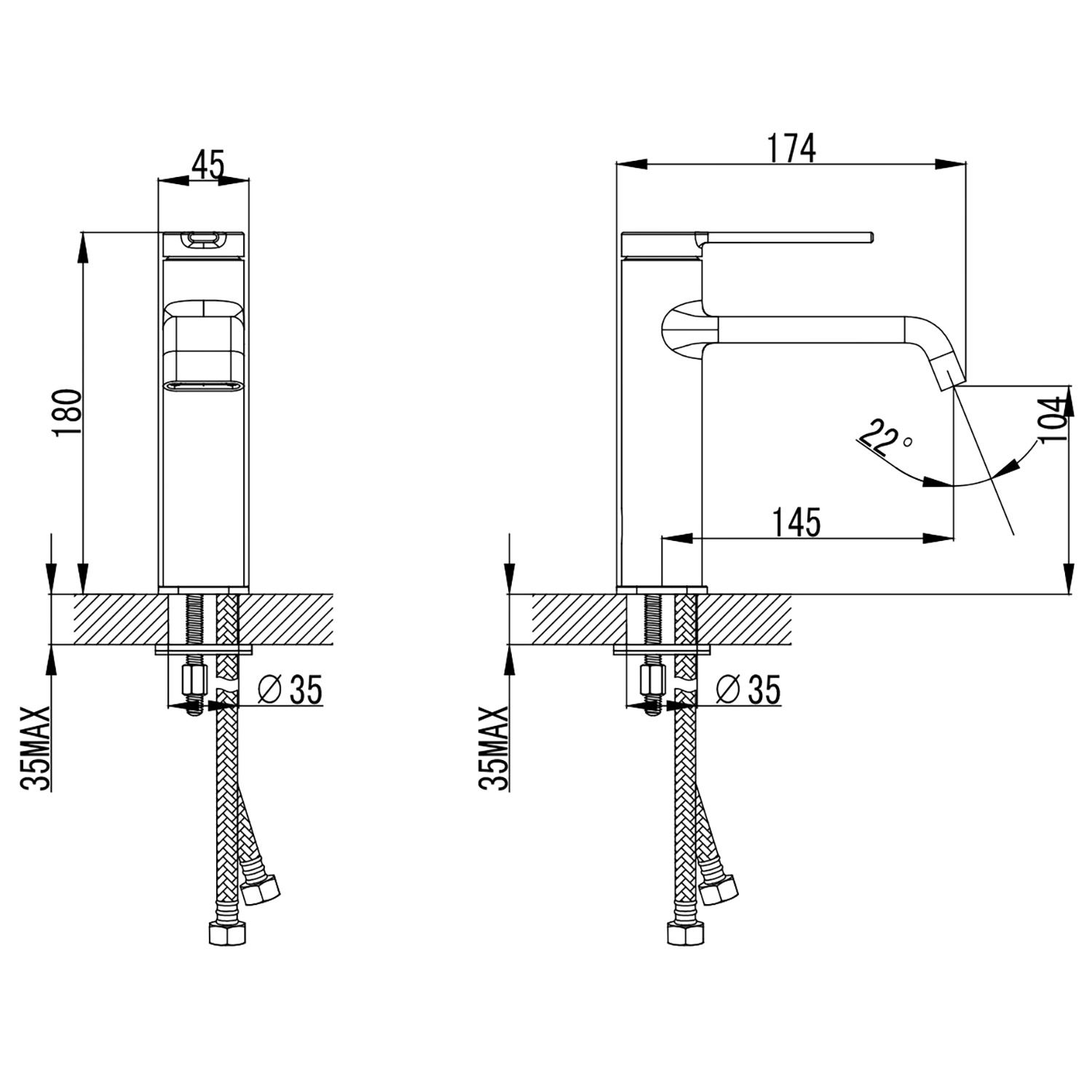 • Высота смесителя: