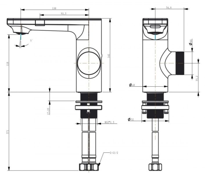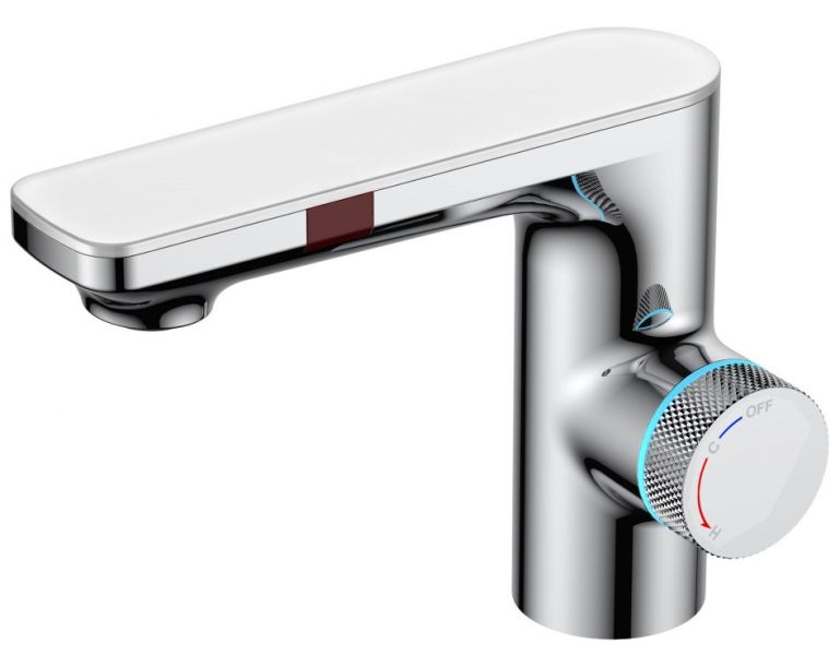 Два режима включения: боковой сенсор отвечает, за непрекращающийся поток воды (реакция 0,1 сек.), фронтальный сенсор - за экономичный, прерывающийся, поток воды (реакция 0,5 сек.).