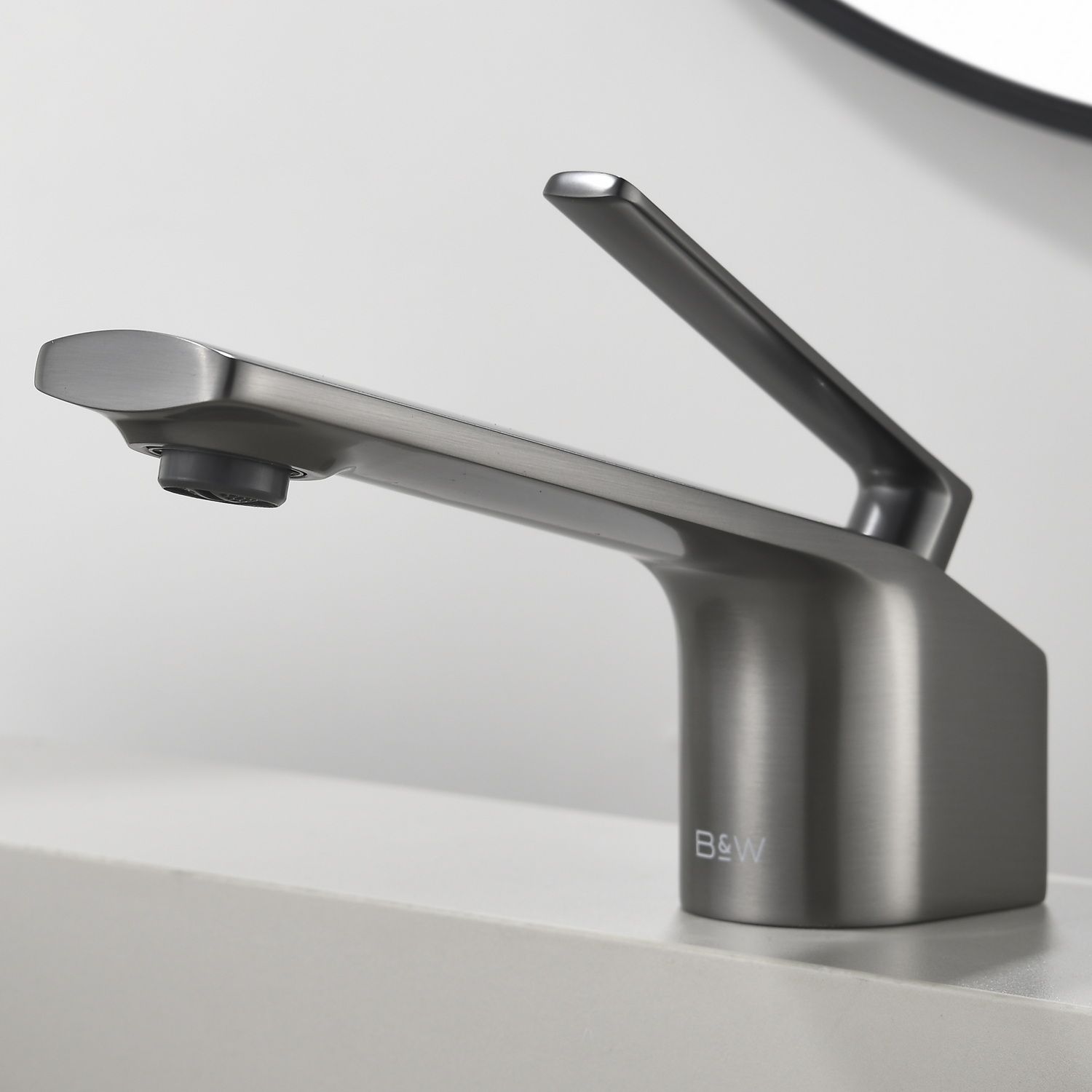 Смеситель для раковины датского производителя Black&White в цвете оружейная сталь. Продукт изготовлен из сантехнической латуни – безопасного для здоровья сплава, обработанный PWD покрытием. Управление давлением и температурой воды происходит с помощью керамического картриджа повышенной пропускной способности. Низкий силуэт смесителя гармонично смотрится на раковинах с мягкими формами, а также минимизирует количество брызг, а излив с возвышением позволяет комфортно мыть руки.