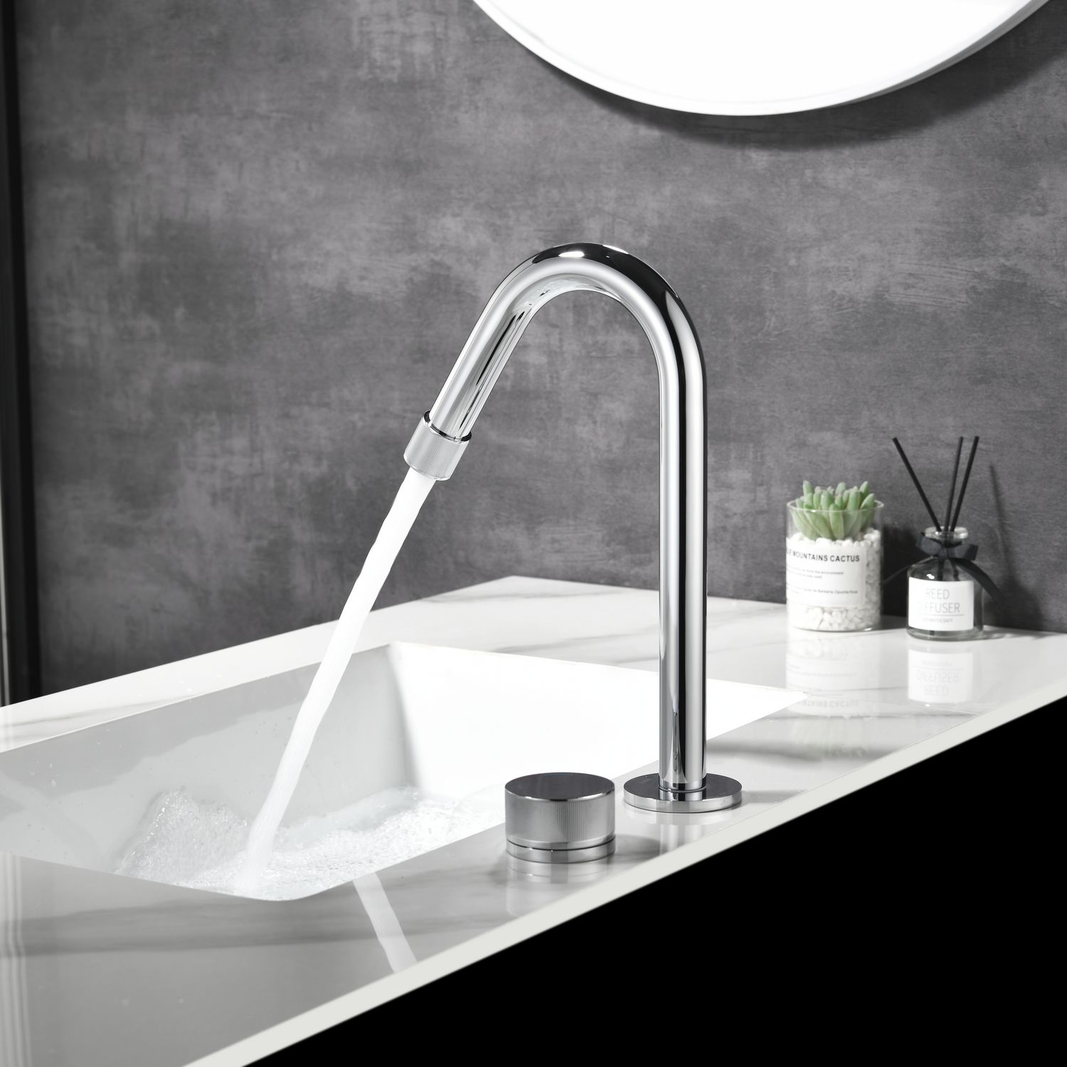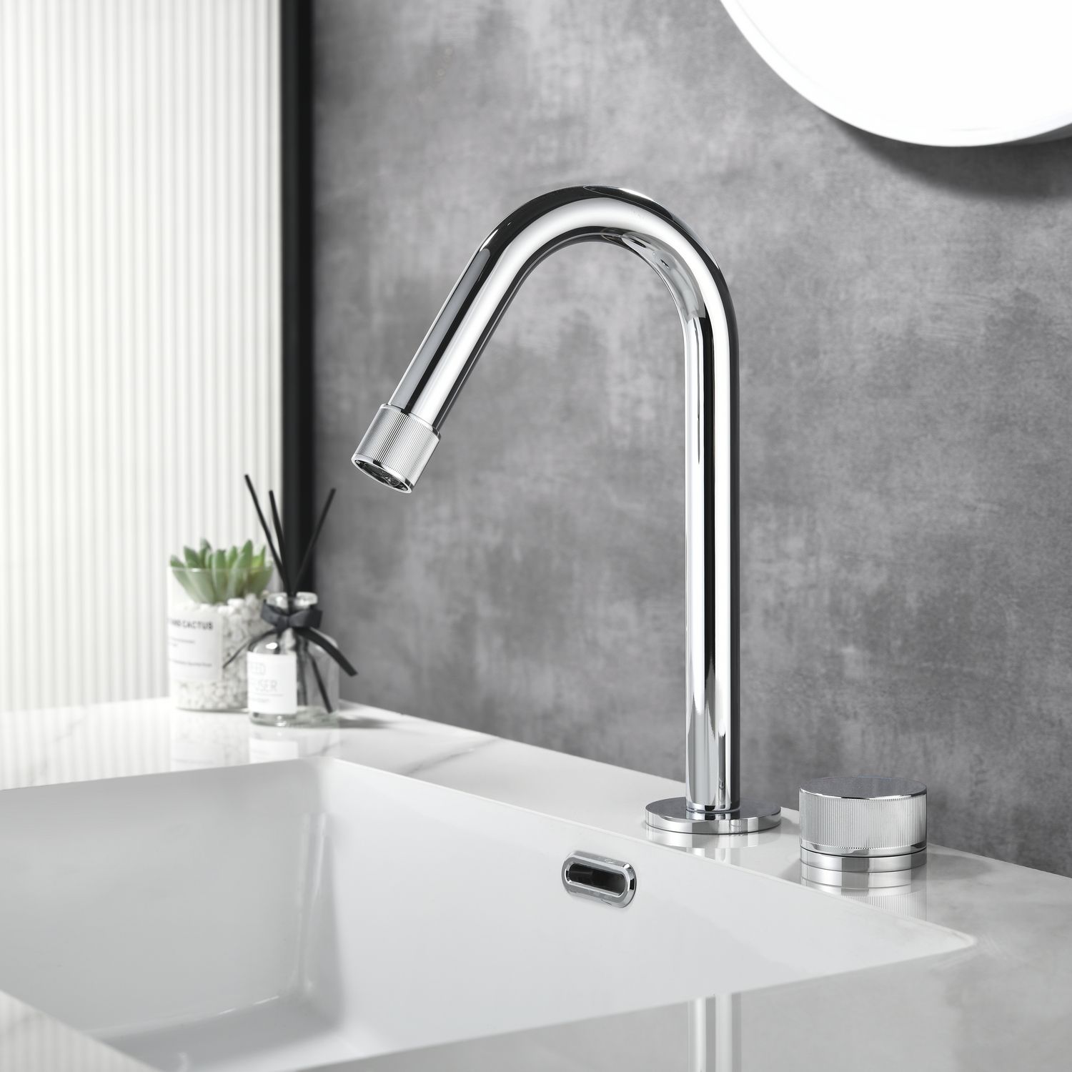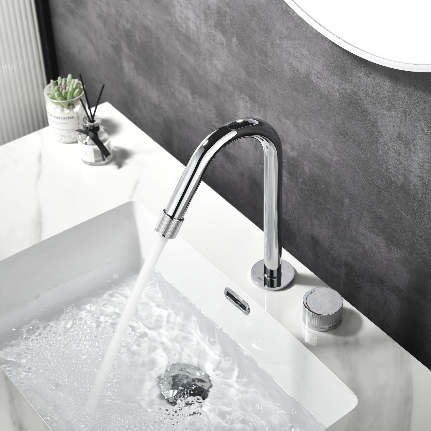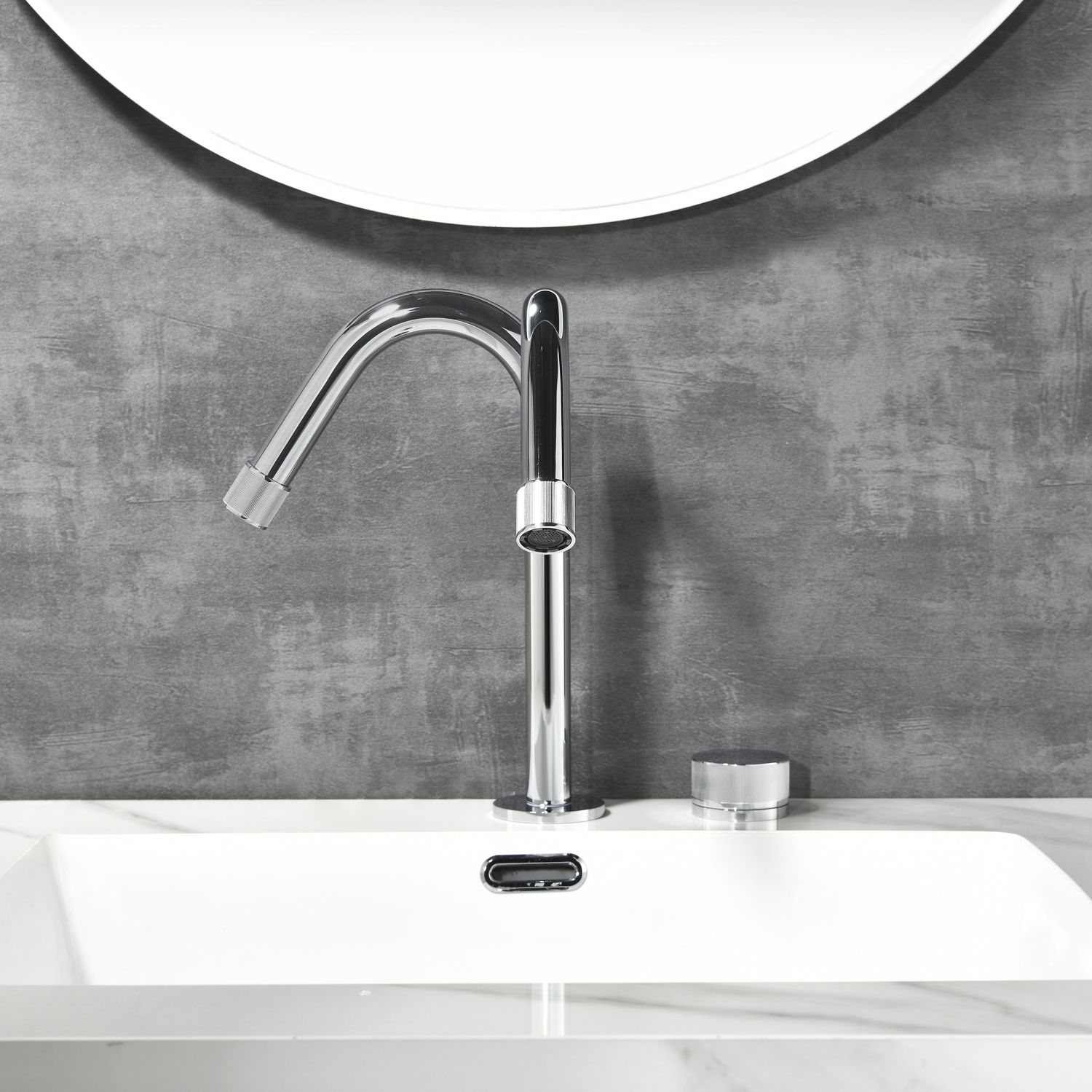 Двухпозиционный смеситель для раковины датского производителя Black&White в цвете глянцевый хром. Изделие выполнено из сантехнической латуни – безопасного для здоровья сплава не подверженного коррозии. Настройка температуры выведена на ручку цилиндрической формы, в которую установлен керамический картридж, монтаж  осуществляется  сбоку от излива. Настройка давления воды выведена на сам излив  в виде кольца с насечками в зоне аэратора. Продукт выполнен в минималистичном стиле и гармонично впишется в Эко интерьеры ванных комнат,а высокий излив удобен в практическом использовании.