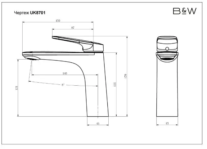 Смеситель для раковины Black&White Universe 8701B чёрный матовый