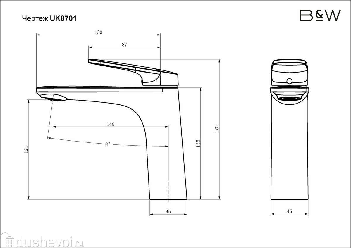 • Высота смесителя: