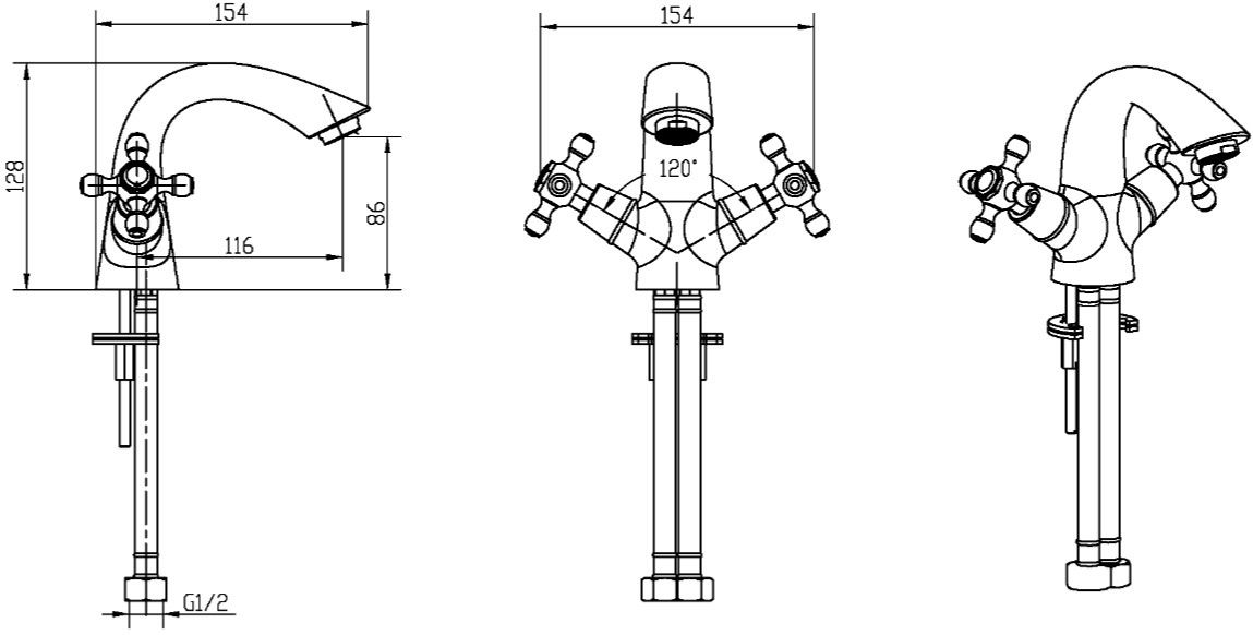 • Высота смесителя: