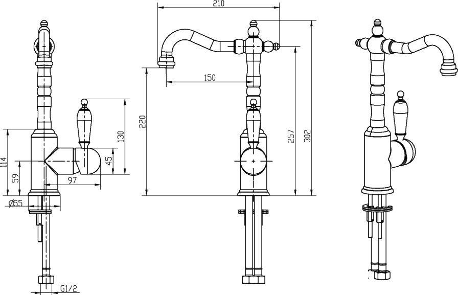 • Высота смесителя: