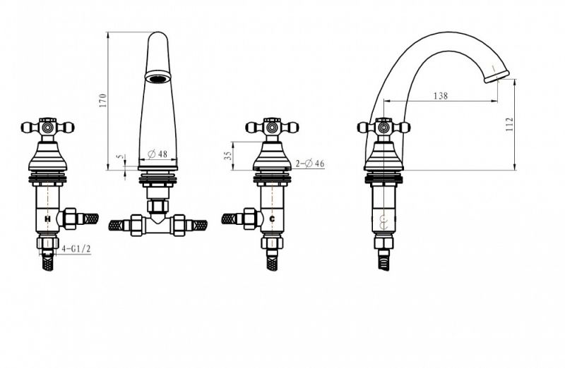 • Высота смесителя: