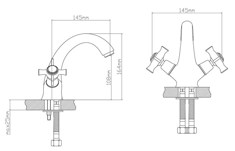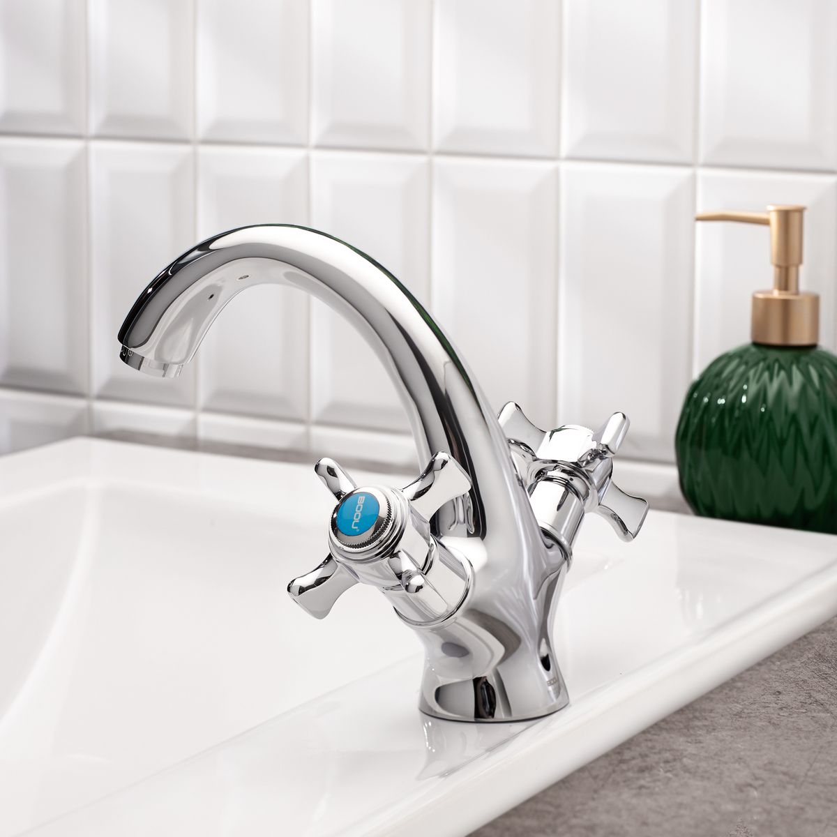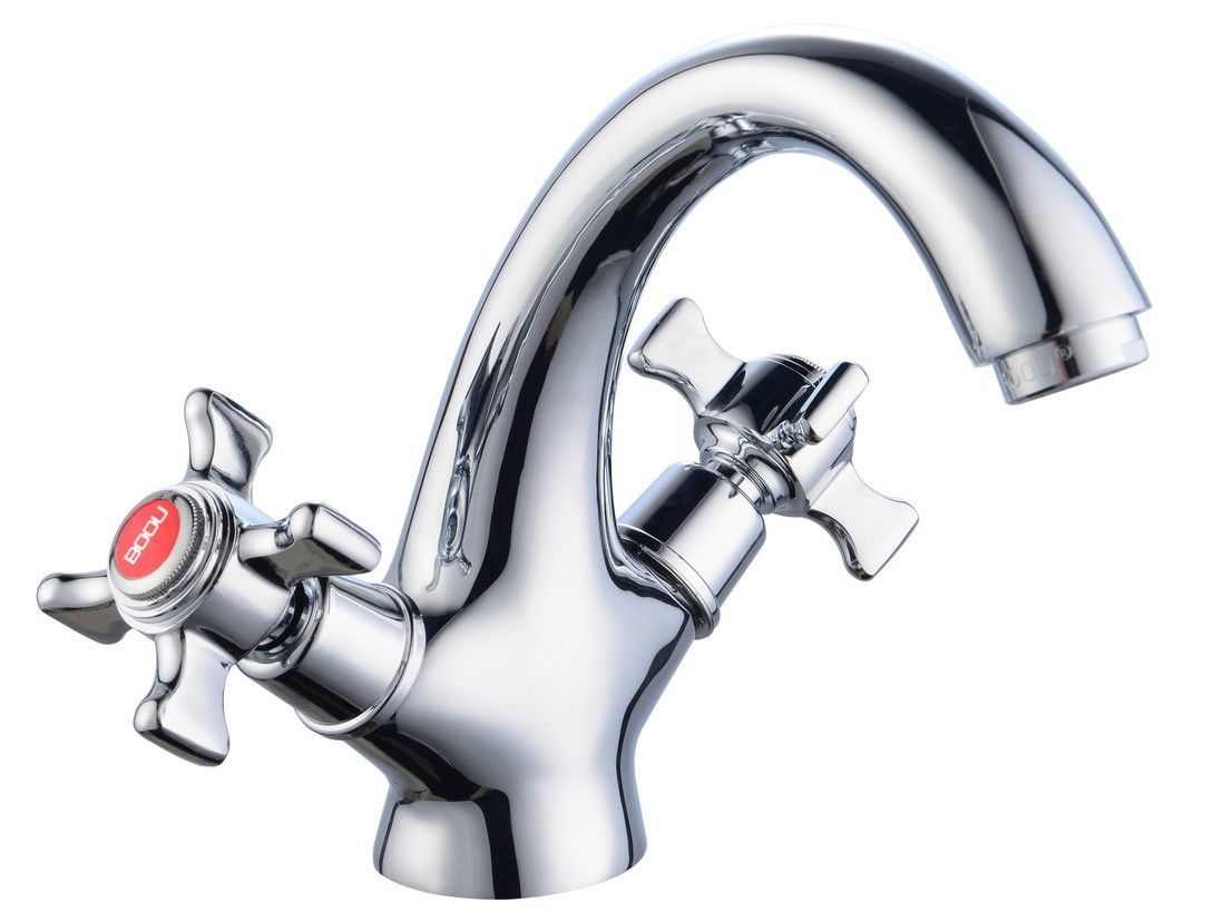Смеситель ТМ BOOU, это стильная классическая двуручковая модель, отлично дополнит не-глубокую раковину.