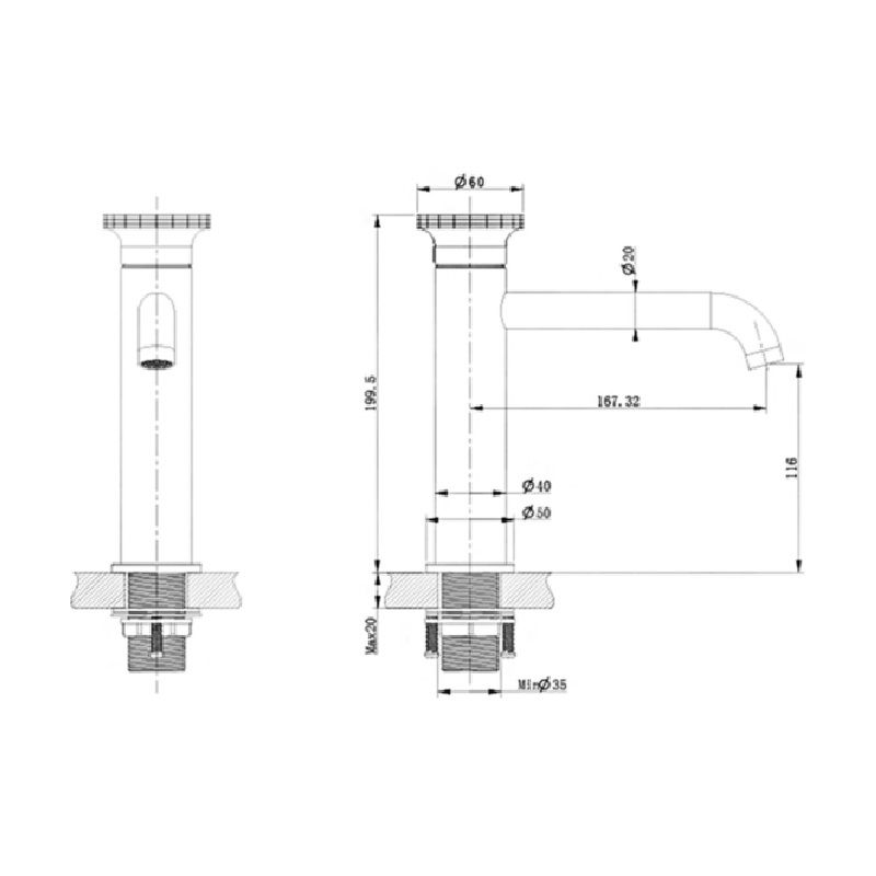 • Высота смесителя: