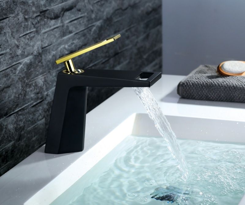 Смеситель для раковины Bronze de Luxe QUADRO A919B, черный/золото