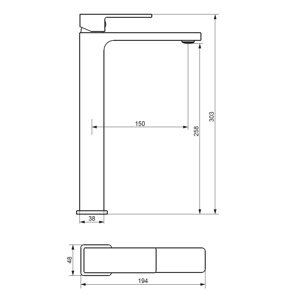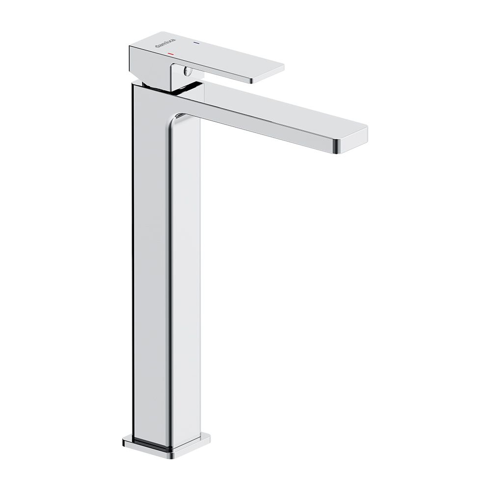Смеситель для раковины Damixa Gala 530250000 хроморпус смесителя 1 шт.; подводка для воды 2 шт.; комплект крепления 1 компл.; инструкция изделия. Хромированный, высокий умывальник для накладной раковины, строгие прямоугольные формы