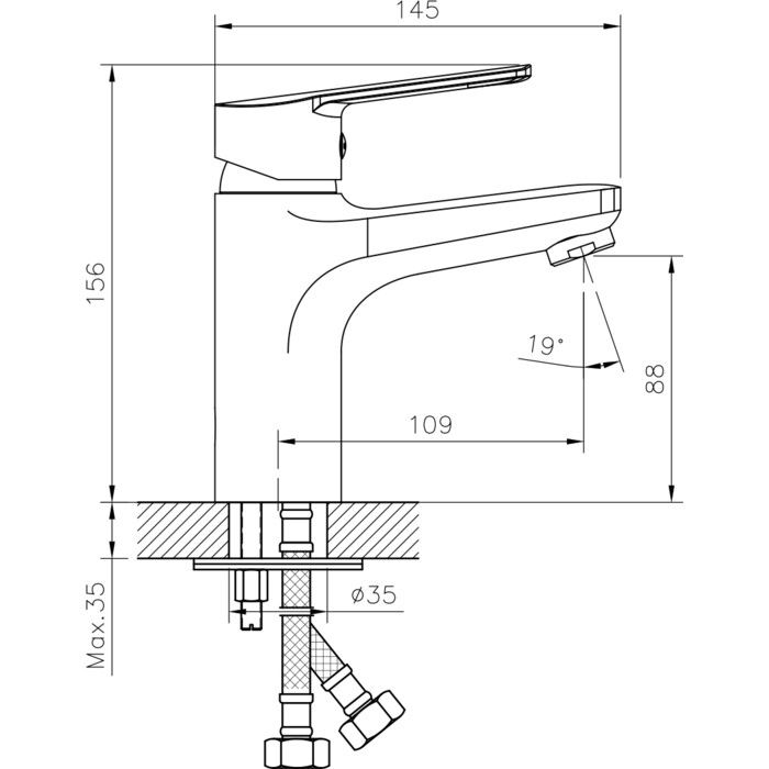 • Высота смесителя: