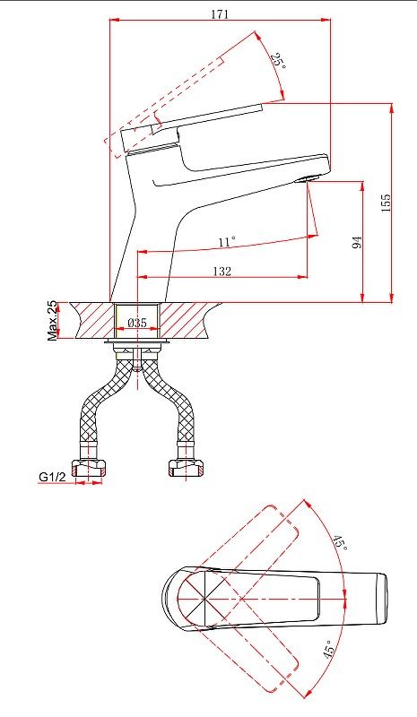 • Высота смесителя: