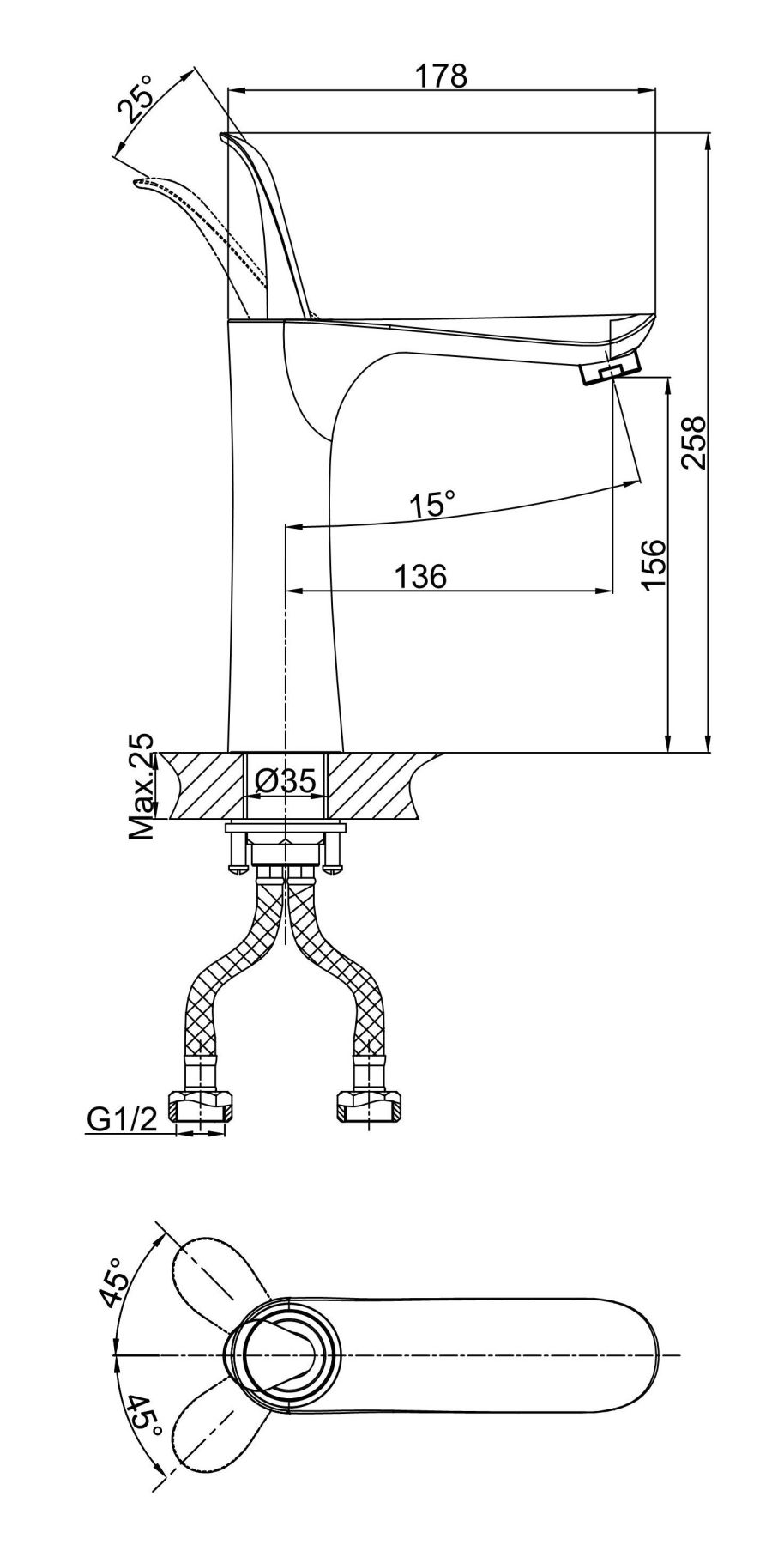 Высота смесителя:25.8