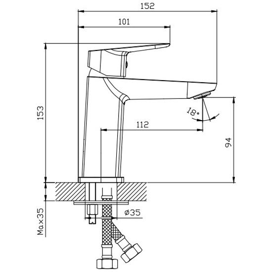 • Высота смесителя:
