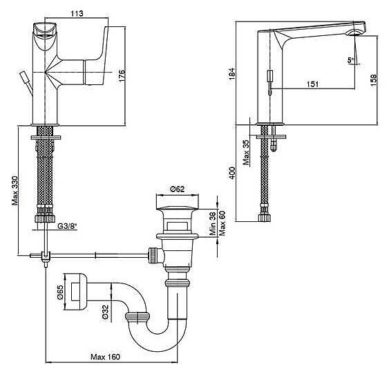 Смеситель для раковины E.C.A. Luna 102108973EX с донным клапаном хром купить