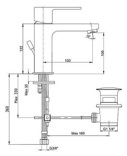 Смеситель для раковины E.C.A. Nita 102188047EX с донным клапаном хром купить