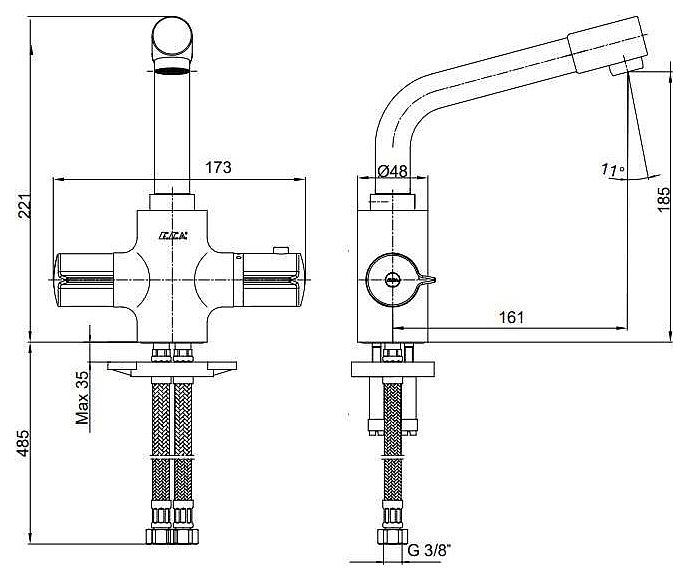 Смеситель для раковины E.C.A. Thermostatic 102108730EX с термостатом хром