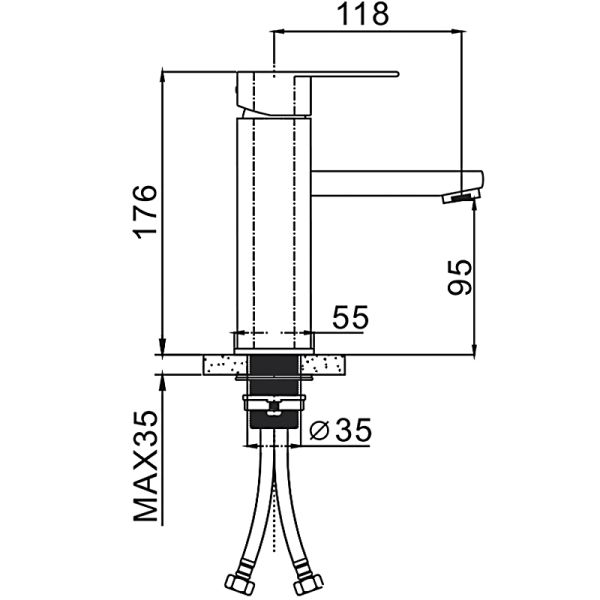 • Высота смесителя: