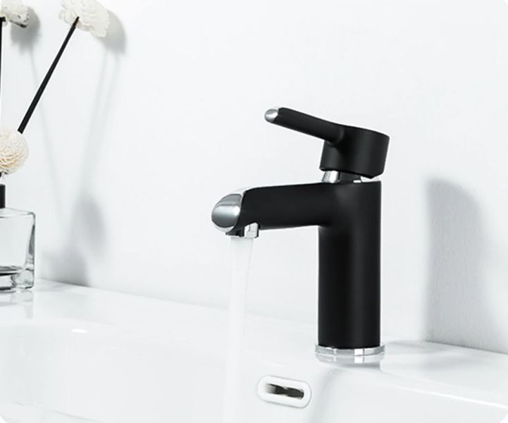 Смеситель для умывальника Gappo G1003-6 - надежная однорычажная модель из латуни. Цвет - хром / черный.