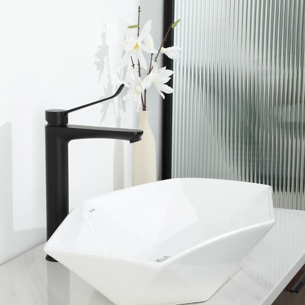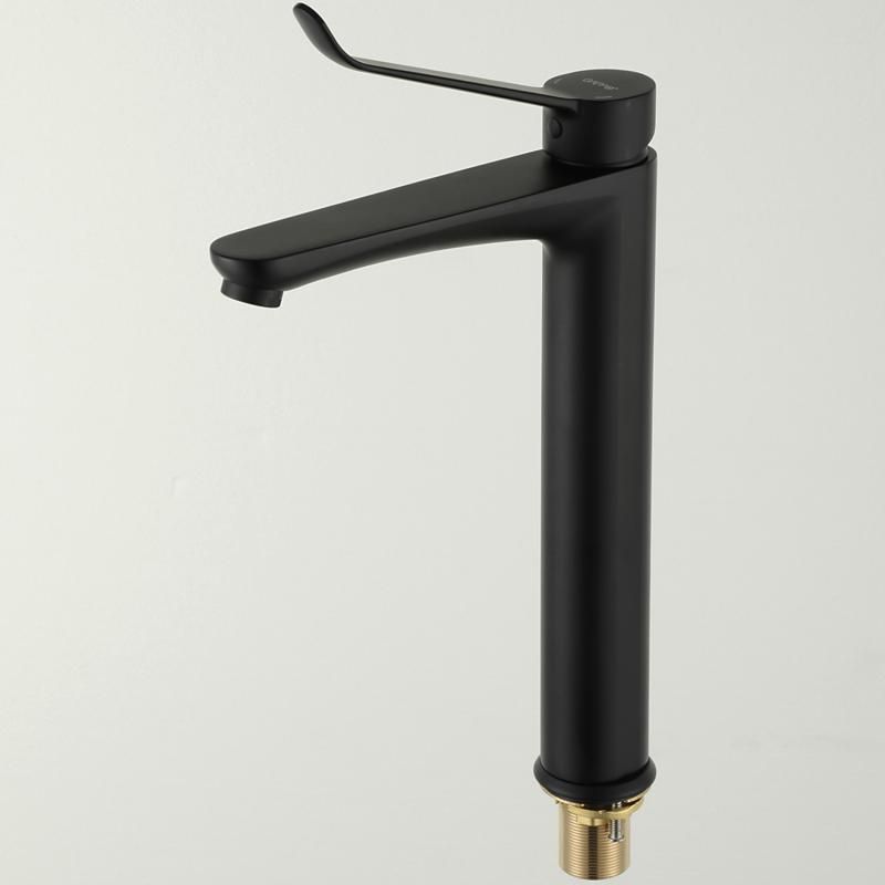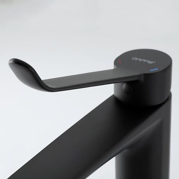 Высокий смеситель для раковины Gappo G1021-26 получил черный матовый цвет, удобную ручку для управления и надежный керамический картридж 35 мм.