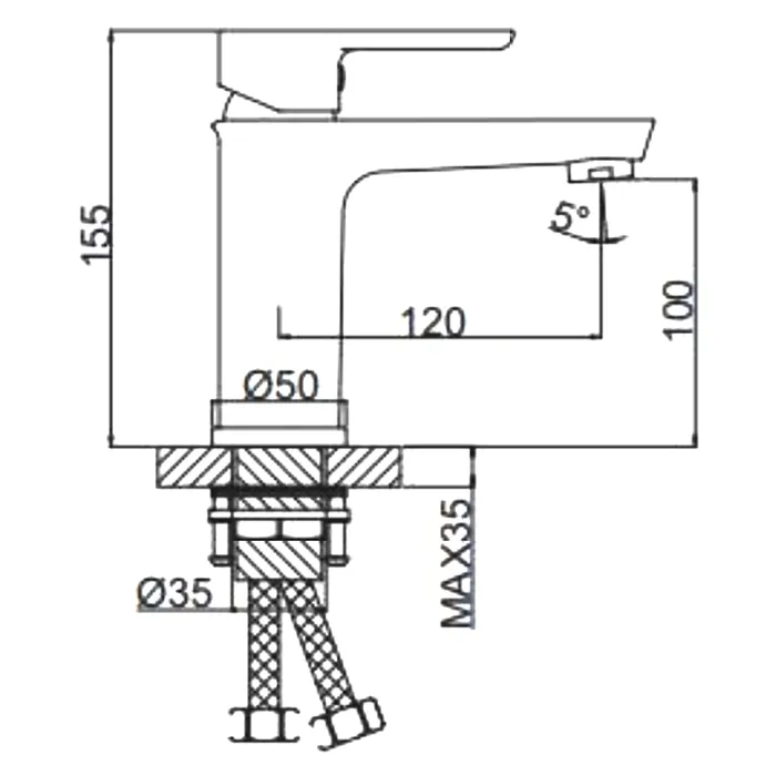 Смеситель для умывальника Gappo G1068 - однорычажная модель с литым изливом. Керамический картридж, гибкая подводка 1/2'', аэратор. Цвет - хром.