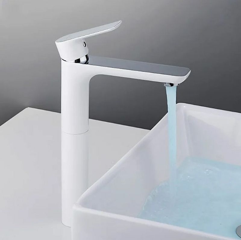Смеситель для умывальника Gappo Noar G1048-2 - надежная однорычажная латунная модель с высоким изливом. Подходит для умывальников, монтируемых на столешницу. Цвет - хром / белый.
