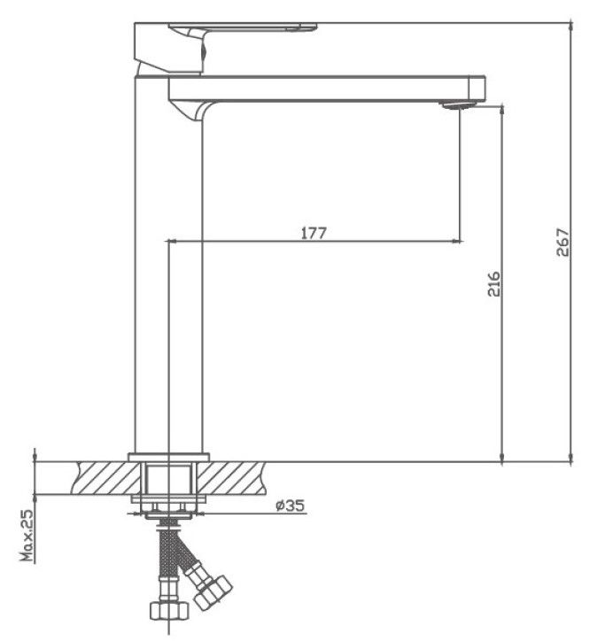 Высокий смеситель для раковины Haiba.Используется для установки на столешницу.Идеально подхлдит для раковин-чаш.Керамический картридж 35 мм.Изготовлен из латуни.Максимальная глубина монтажа 25 мм.Диаметр монтажного отверстия 35 мм.
