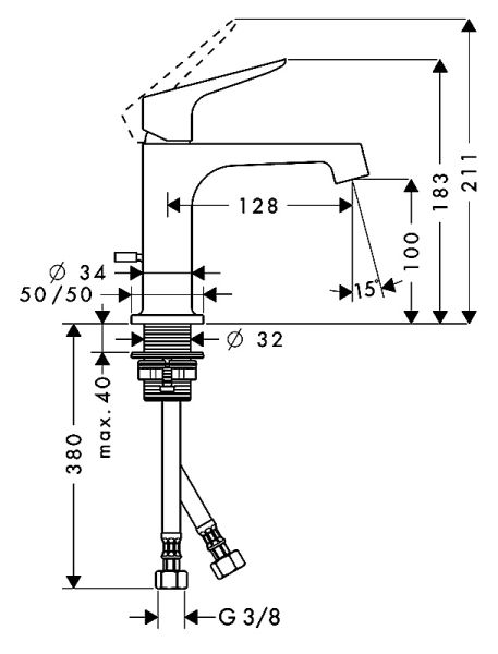 • Высота смесителя:
