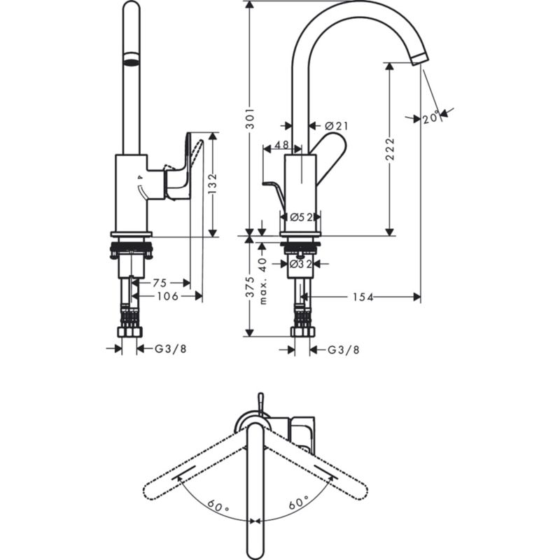 • высота излива: 222 мм