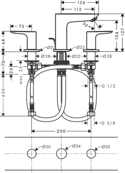 • Высота смесителя: