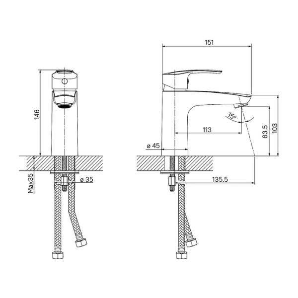 Смеситель для умывальника Ray имеет универсальный дизайн и благодаря стильному матовому черному цвету станет ярким акцентом современного интерьера ванной. Аэратор в смесителе расположен под наклоном, направляя струю в удобную точку, что делает комфортным и мытье рук, и наполнение больших емкостей.