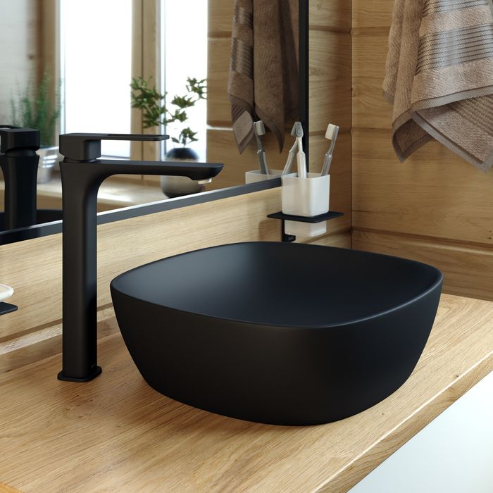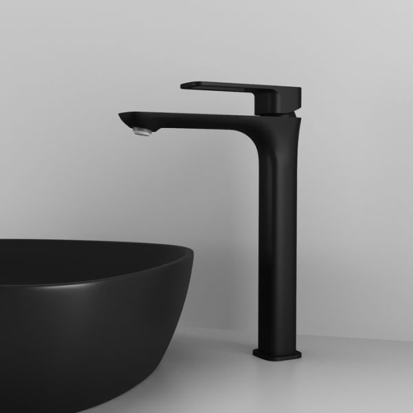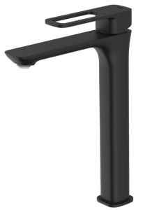 Высокий смеситель для настольного умывальника Slide в трендовом черном цвете отлично дополнит настольный умывальник-чашу. Отверстие-петля на ручке выполняет декоративную и при этом практичную роль — ее легко захватить даже намыленной рукой и отрегулировать напор или температуру. Силиконовый аэратор эстетично скрыт в корпусе излива. В комплекте гибкая подводка и комплект крепежа.