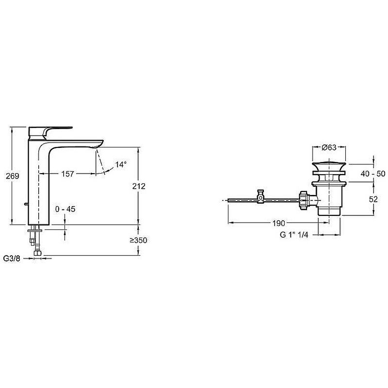 • Удобная высота ножки до аэратора: 176 мм
