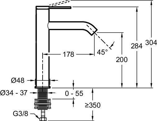 - Модный изогнутый излив, обеспечивающий хороший поток воды