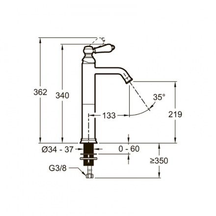 Смеситель Jacob Delafon Louise для раковины, высокий, без донного клапана, черный матовый, E24361-BLНазначение - для раковины