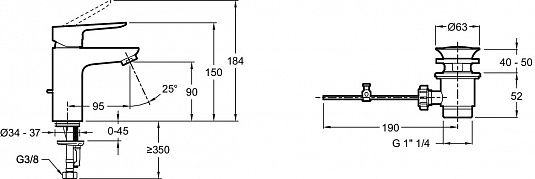• Донный клапан: есть, в комплекте