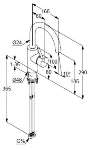 • Высота смесителя: