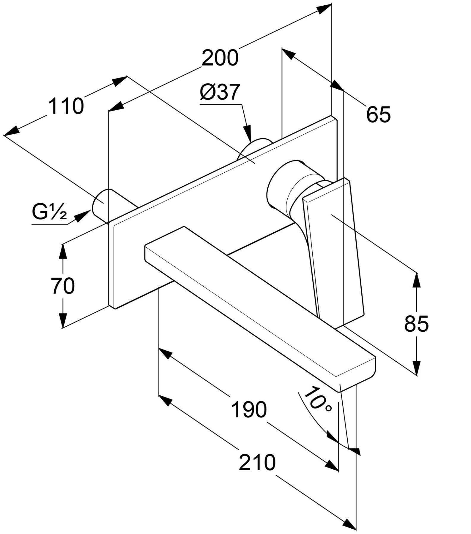 длина излива 210 мм