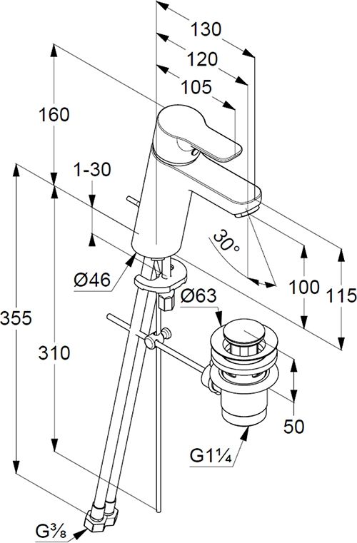• гибкая подводка G 3/8