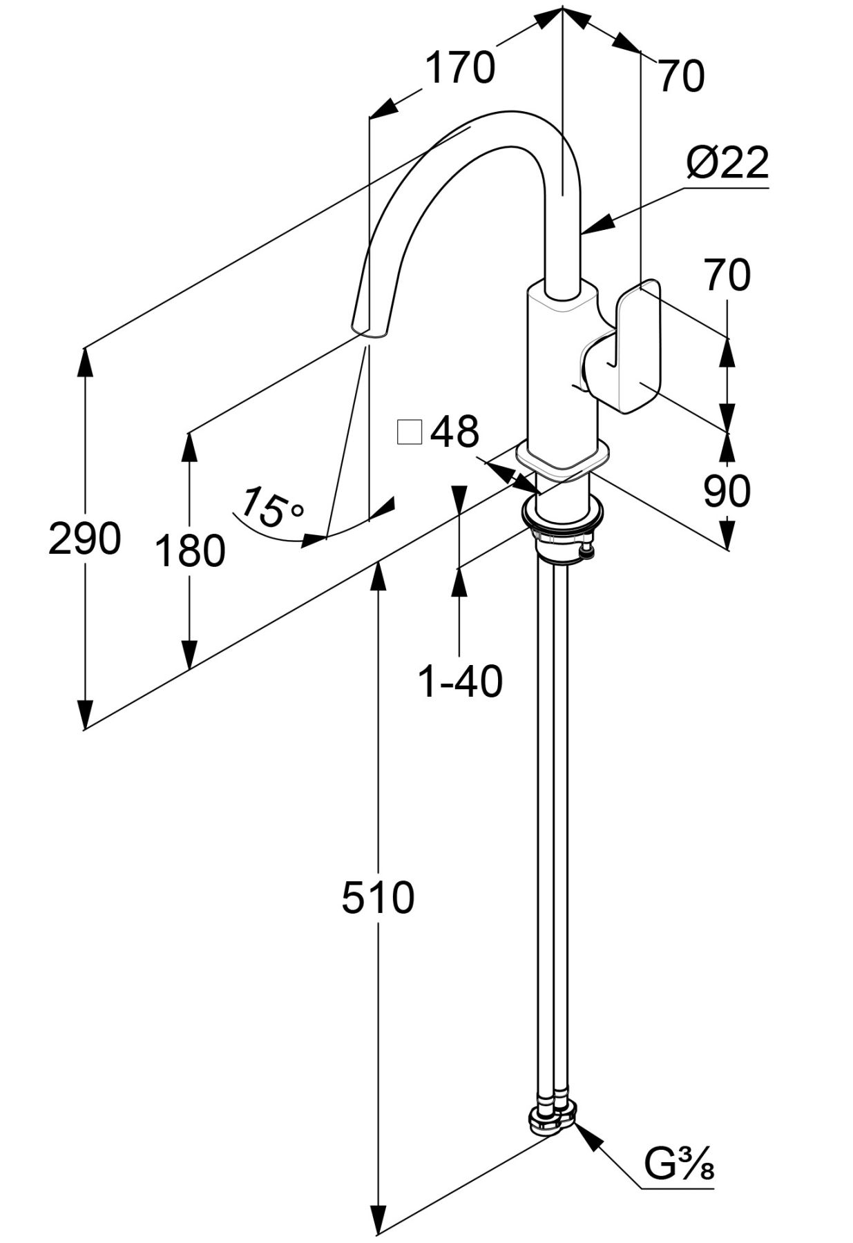 высота излива 180 мм