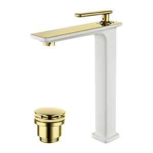 Смеситель для раковины Lemark Mista LM6409WG с донным клапаном белый/золото