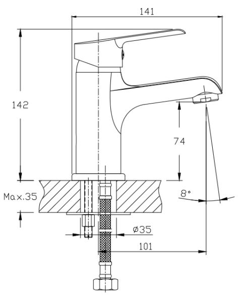 Однорычажный смеситель отлично украсит любую современную ванную комнату. Его примечательный дизайн и потрясающие эксплуатационные качества не подлежат сомнениям. Корпус выполнен из сплава латуни с высоким содержанием меди, а качественное покрытие гарантирует сохранение красоты поверхности на долгие годы. Керамический картридж отличается практичностью и долговечностью. Аэратор создает мягкую струю, насыщая воду воздухом.