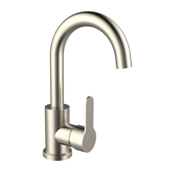 Высокий минималистичный смеситель для раковины Orange Steel M99-011ni идеально впишется как в современные, так и в классические интерьеры благодаря покрытию в цвете матовый никель и простому дизайну. Смеситель, выполненный из латунного сплава, имеет высокий изогнутый излив, который, несомненно, привлекает внимание точеными ровными формами. Рычаг управления силой и температурой потока воды не выделяется, находясь под изливом, что делает его практически незаметным и не нарушающим общую гармонию конструкции.